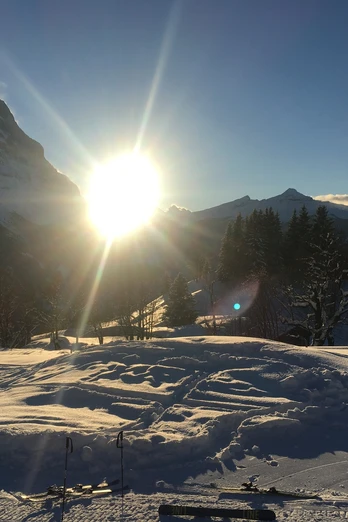 Hin- und Rückreise: Mit dem Zug nach Grindelwald, Anschliessend zu Fuss oder per Grindelwald BUS bis Zur Haltestelle Kirche