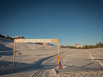 Le départ du parcours se situe à Lombachalp, au restaurant Jägerstübli, situé à 1560 m d'altitude. Ici, il est possible de faire une pause restauration sur la terrasse ensoleillée avant ou après le ski de fond. Depuis le parking, le parcours tracé serpente entre le Hohgant et l'Augstmatthorn à travers la tourbière idyllique. Le parcours passe près de ruisseaux doux, de sapins et de pins cembros sauvages en direction du massif du Hohgant, jusqu'à l'alpage Habchegg, puis revient par le même chemin, offrant ainsi aux skieurs de nombreux beaux points de vue sur les champs lapiaz bizarres et les montagnes environnantes. Avec un peu de chance, on peut apercevoir un cerf ou un lagopède, qui ne souhaitent pas que les visiteurs étrangers troublent ce calme presque fantomatique.