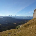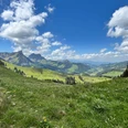 Pour atteindre ensuite le Hohgant, on reprend le même chemin jusqu’à la bifurcation dans la dépression et on se trouve environ 30 minutes plus tard au sommet du Hohgant. Celui-ci présente un plateau sommital étonnamment vaste, pierreux et herbeux – en cas de brouillard, l’orientation peut y être difficile. Par beau temps, la vue est impressionnante. En suivant les balises blanches-rouges-blanches, le retour descend par la longue arête sud, d'abord parsemée de nombreux rochers, jusqu’à l’intersection P.1739 près du Stand. La route d’alpage empruntée pour la montée est rapidement atteinte et mène de nouveau à Schwarzbach.