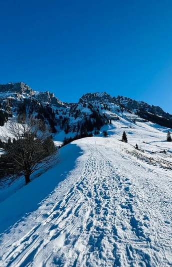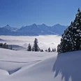 On descend ensuite par la crête qui décline en douceur jusqu'au Rotmoos, la célèbre réserve naturelle. Ce secteur enneigé et semi-ouvert laisse deviner à quel point il doit être unique ici en été. Dans la zone du sentier d'été, on traverse le Rotmoos et via Hängstli et Dräcker, on revient ensuite à Innereriz.