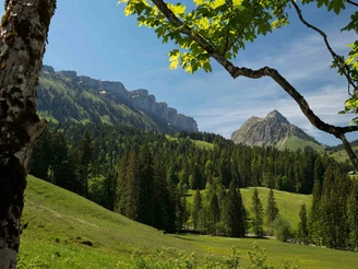 Ausgangs- und Endpunkt dieser Wanderung ist die STI-Haltestelle «Innereriz Säge» der Linie 41. Der Wanderweg geht hinter dem Restaurant Säge auf asphaltierter Strasse über den «Dräckerberg» hinauf zum «Hängschtli». Der Weg dorthin bietet immer wieder freie Sicht auf hiesige Berglandschaft mit den «Sieben Hengsten», dem «Trogenhorn» und dem «Hohgant». Der Wanderweg durch das Waldstück führt über einen Steg ins Rotmoos.
