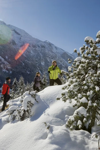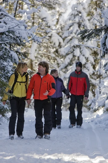 Le véritable site Uf der Höh n’est pas accessible en hiver. En suivant le sentier balisé de randonnée hivernale, on se réfère aux panneaux roses qui mènent au site Höh. De là, la courte excursion à la Risetenegg vaut la peine – ce n’est pas un point de vue classique, car la vue est limitée des deux côtés par la dense forêt de conifères. Mais vers l’est et le sud, la vue sur Kandersteg et les sommets environnants est d’autant plus attrayante. En traversant la forêt et en longeant sa lisière, on descend par des chemins forestiers tranquilles jusqu’aux maisons de Bütschels. Là, on tourne à gauche en direction de la ligne de chemin de fer et on la suit jusqu’à la gare de Kandersteg, accessible par le passage souterrain prolongé du quai.
