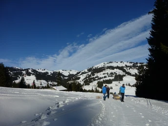 Le chemin du retour monte d'abord légèrement puis devient plat jusqu'au restaurant Lochstaffel. Prudence lors de la traversée de la piste. Depuis Lochstaffel, le sentier hivernal longe la lisière de la forêt en descendant vers la station intermédiaire. Après un passage en forêt, on atteint le point central des installations de ski. De là, on peut prendre la télécabine pour retourner à Saanenmöser ou descendre à pied par le chemin de montée en passant par le bar Euter.