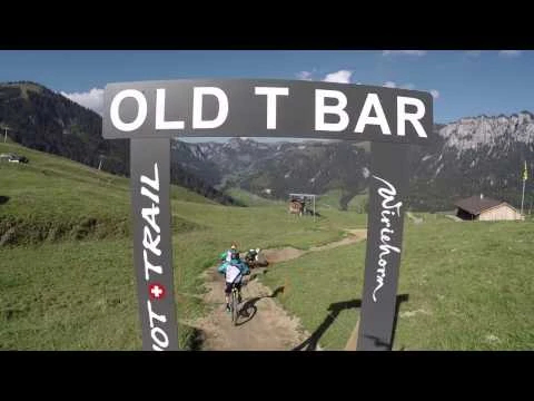 À la gare amont des remontées mécaniques Wiriehorn, tu passes à gauche devant l'hôtel de montagne et suis le sentier à travers les alpages en direction de Röscteschwend. Après quelques centaines de mètres, tu aperçois à gauche le podium de départ « Old T-Bar ». À partir d'ici, ça commence vraiment et tu suis les balises jusqu'à la vallée.