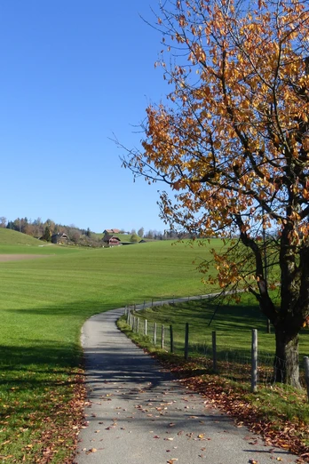 Am Ausgangsort ist das Ziel Steffisburg auf dem Wegweiser vermerkt. Der Weg sollte sich also ohne Probleme finden lassen. Das Dorf Heimenschwand verlässt man in Richtung Westen. Bald ist links abzuzweigen. Der Blick fällt auf Voralpen und Alpen, so etwa auf die Schrattenflue, den Hohgant, Niesen oder das Stockhorn. Nun erfolgt ein erster Abstieg über Feldwege und Fahrstrassen am Ortsteil Birchbüel und bei den Gehöften Ey hinab zur Rotache. Gleich geht es wieder aufwärts, zuerst durch Wald, dann über einen Feldweg. Auf der Anhöhe ist rechts abzubiegen. Am Wegweiserstandort Lood vorbei gelangt man zum Gutshof Ufem Port. Der Wegweiser gebietet links abzubiegen, um nach Steffisburg zu gelangen. Ein kurzer Abstecher geradeaus in Richtung Lueg lohnt sich, denn wenig später erscheint links auf einer Anhöhe ein Signal der Landesvermessung. Es gehört zur Gedenkstätte, die Professor Eduard Imhof gewidmet ist. Die Gemeinde Fahrni würdigt damit ihren wohl berühmtesten Bürger. Der international anerkannte Kartograph hat unzählige Kartenwerke wie die Schweizer Schulkarte erschaffen. Ein Rastplatz lädt zum Verweilen und Geniessen der Aussicht ein. Das Panorama reicht von den Alpen über das Mittelland bis zum Jura. Nach diesem Abstecher schliesst sich der Abstieg nach Steffisburg an. Durch das Dorf Rachholtern gelangt man nach Birchi und weiter durch den Birchigraben und dem Schluuchbach entlang hinunter nach Steffisburg.