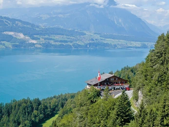 - niemans573 novembre 2022 à 19:21FolkloriqueEndroit typique où l'on retrouve tout le folklore de l'oberland (déco, tenue des serveuses, menu). La cuisine traditionnelle est bien exécutée et la vue incroyable sur le lac de Thoune.More