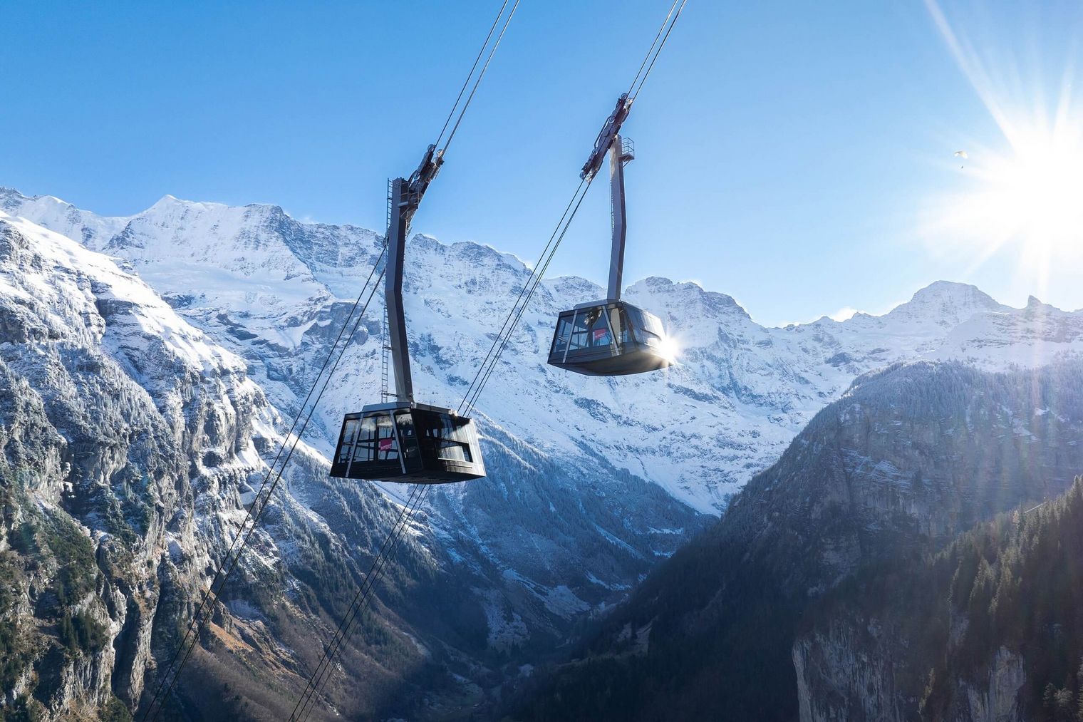 Wenn du das Schilthorn – Piz Gloria besuchst, triffst du bereits bei der Anfahrt auf ein ganz besonderes Highlight: die steilste Seilbahn der Welt! Mit einer Steigung von 159,4% verbindet sie den Talboden mit dem autofreien Bergdorf Mürren.